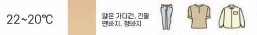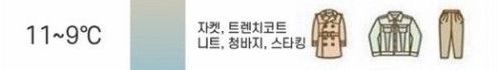 쌀쌀한 날씨입니다. 니트나 자켓,얇은 코트를 입는 것이 좋아요.