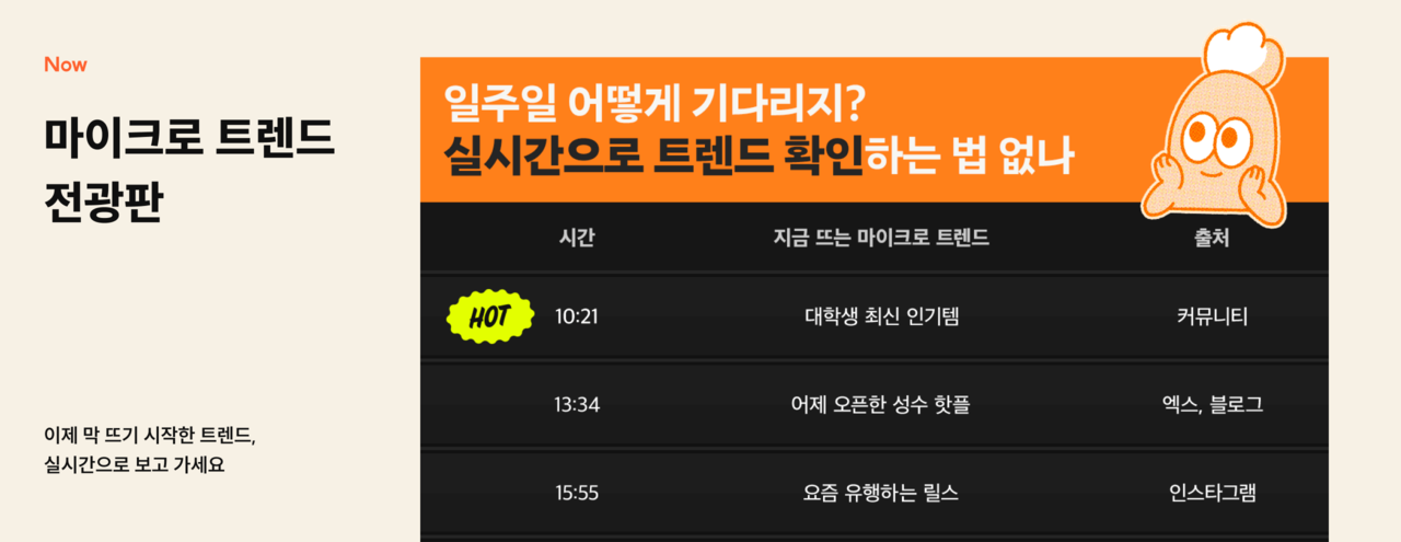 「캐릿(Careet)」이 운영하는 요즘어 사전, 마이크로 트렌드 전광판 ⓒ대학내일ES
