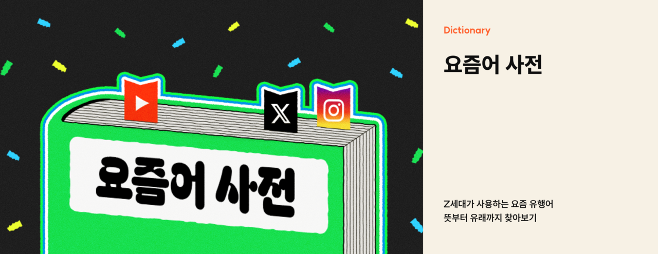 시리즈 콘텐츠 외에도, 업무 중 상시로 활용할 수 있는 서비스형 콘텐츠가 마련되어 있습니다. '요즘어 사전'(링크)은 신조어, 밈, 트렌드 키워드 등을 이해할 수 있도록 맥락을 함께 설명해 주고, '뉴스 클리핑'(링크)은 MZ세대와 관련된 주요 이슈와 데이터를 매일 정리해 전달합니다.