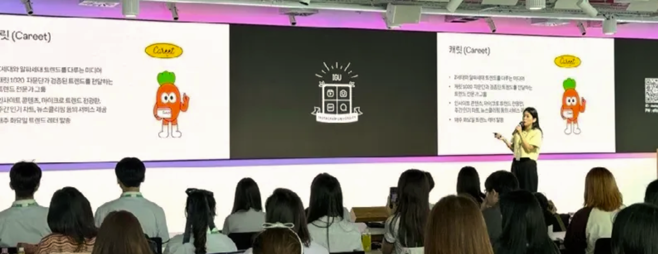 「캐릿(Careet)」은 1020 트렌드 디깅 크루를 통해 제보받은 다양한 사례를 통해 인사이트를 도출하고, 외부 강연을 통해 캐릿만의 트렌드를 전달하기도 한다. ⓒ대학내일ES