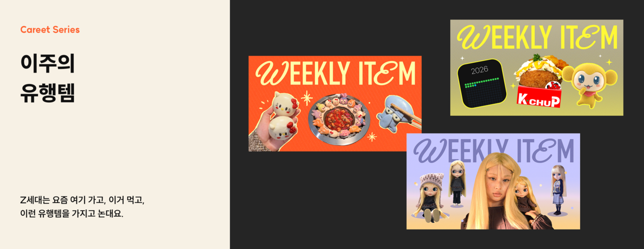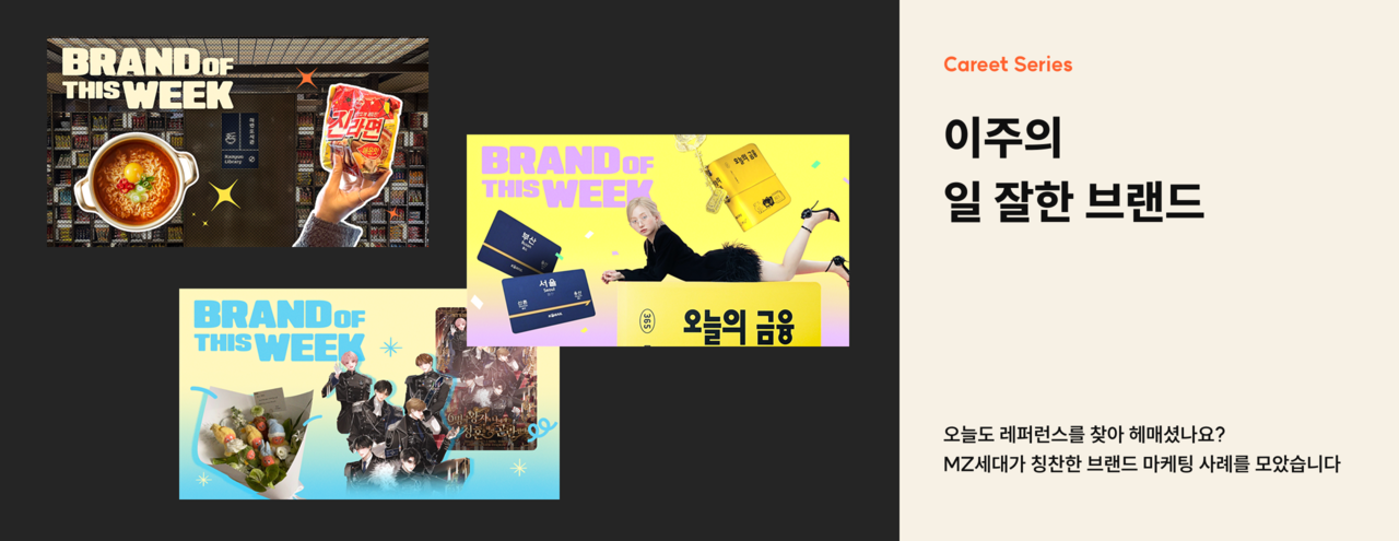 「캐릿(Careet)」이 발행하는 '이주의 유행템' 시리즈, '이주의 일 잘한 브랜드' 시리즈 ⓒ대학내일ES