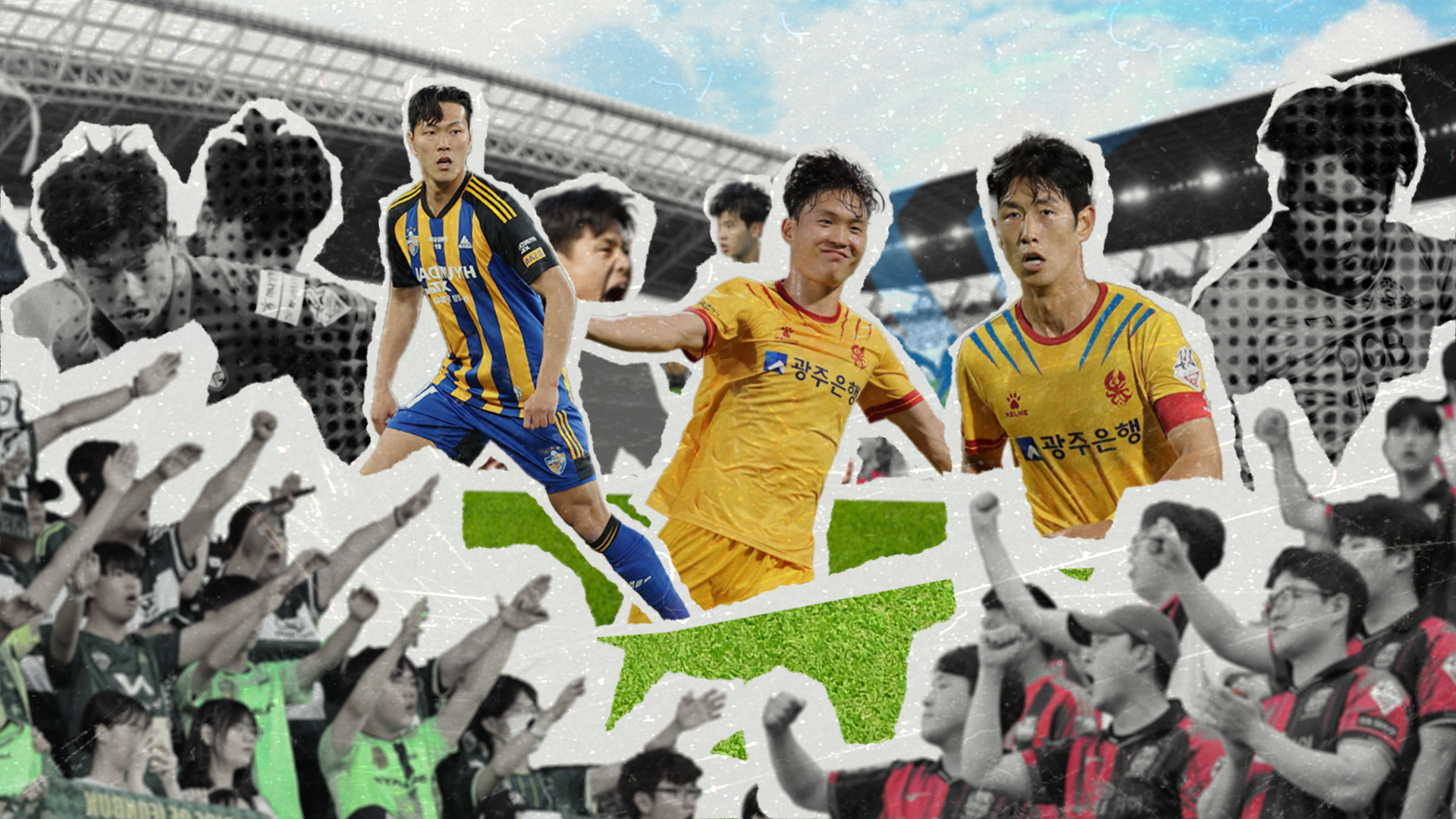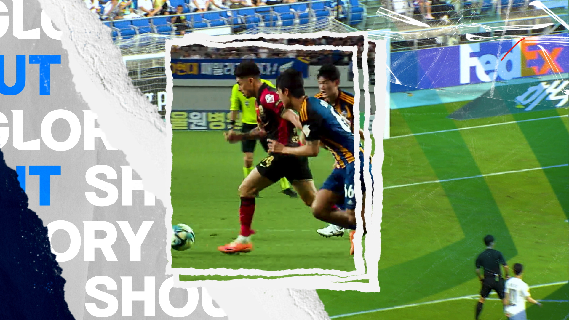 마치 각각의 요소들이 경기장 안에 하나씩 덧붙여지는 듯한 콜라주 기법을 시각적 포인트로 활용해, 전체적인 몰입감을 높였습니다. 또한, 프로스포츠가 연고지 기반으로 팬들의 긍정적인 자극을 전할 수 있다는 특성을 활용했습니다. 각 구단의 엠블럼이 등장할 때 연고지를 상징하는 요소를 디테일한 시각 표현으로 담아냈습니다. 또한, 기존 K리그 전용 음원인 ‘앤썸’을 다양한 버전으로 편곡을 제안하며, 컨셉과 일치하는 사운드를 제작하기도 했습니다.