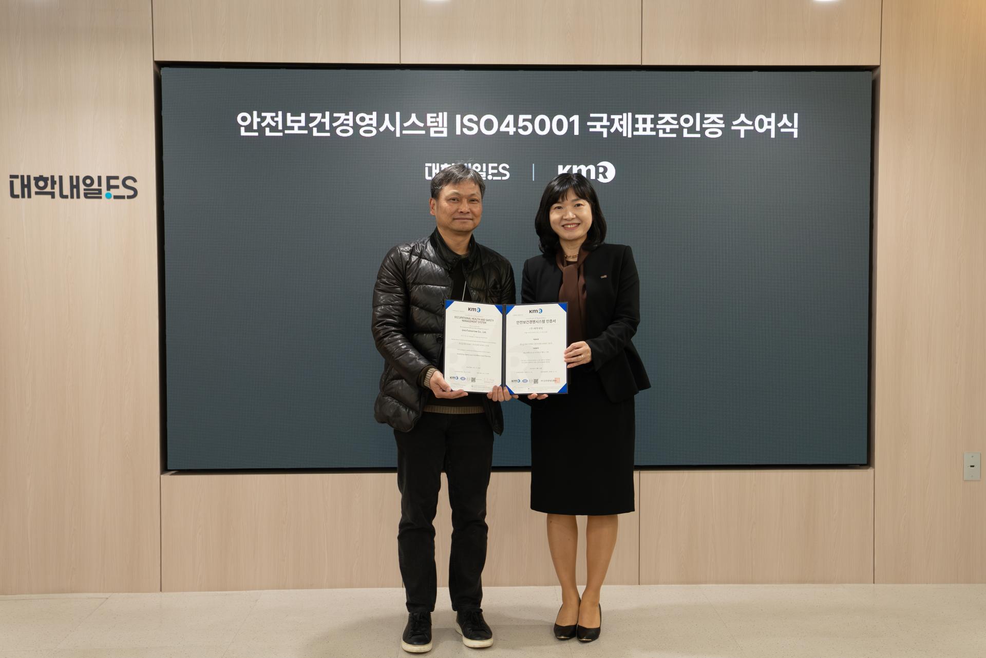 대학내일이 지난 2025년 11월 14일, 한국경영인증원으로부터 국제표준 안전보건경영시스템인 ‘ISO 45001’ 인증을 획득했다.